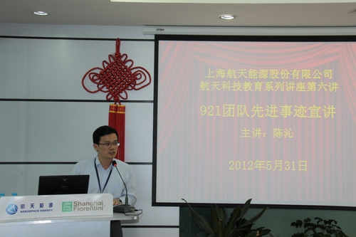 5月31日,航天科技教育系列讲座第六讲在航天能源公司中心厅举办,邀请院党委工作部副部长陈沁同志一行宣讲"921团队先进事迹"。讲座由党委书记曾凡龙主持,公司中层以上干部及技术、营销人员聆听了讲座。此次讲座旨在传承上海航天"921"团队精神,围绕公司科学发展,对全年责任令任务进行再明确,为下半年生产高峰做好思想发动。