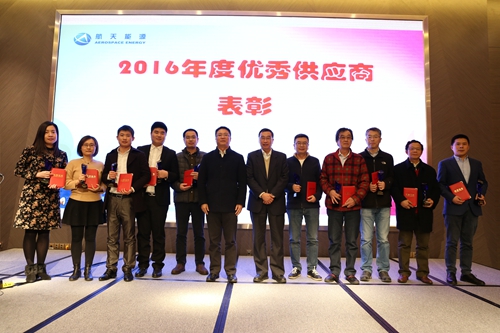 会上,对10家2016年度优秀供应商进行表彰,优秀供应商代表慧桥电气、四川长仪公司领导表示希望与航天能源集团建立更加紧密合作关系的愿望。