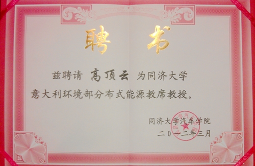 一直以来,意大利环境国土海洋部与同济大学在汽车、能源、环境等领域开展科研合作项目。近年来双方开始在节能与减排方面进行广泛合作。2011年3月,在同济大学汽车学院设立了分布式能源教席。我司副总、同济大学客座教授高顶云先生被聘为该教席的教授,负责该教席的工作。该教席将组织开展中意相关技术合作和交流,并引入意大利节能减排方面的新技术新装备,为我国经济的持续发展贡献力量。