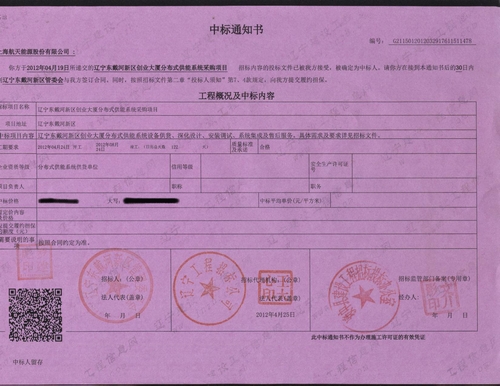 2012年4月20日,我司迎来重大喜讯,在辽宁东戴河新区创业大厦分布式供能系统项目中名列中标候选人第一名。我司在分布式供能系统方面拥有丰富的技术和项目管理经验,此次成功中标显示了我司在冷热电联供方面的雄厚实力。