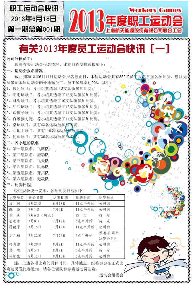 2013年职工运动会快讯(第一期)