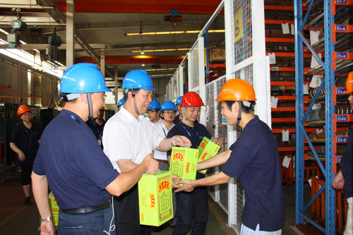 7月9日,八院工会主席吴海中一行来到航天能源、上海飞奥生产一线,慰问冒着高温酷暑奋战在生产一线的公司职工,带来八院党政领导班子的关心,送来夏日高温的"清凉"。在慰问中,吴主席特别强调要认真贯彻落实高温期间安全生产作业的规定,提醒员工们要注意安全,不要违章操作,做好劳动保护,防患于未然。