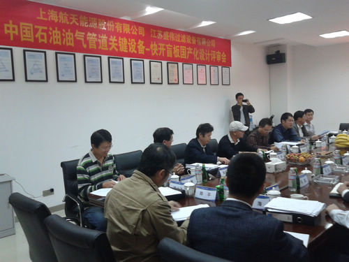 11月2日,中国石油西部管道公司在江苏省常州市组织召开了油气管道计量和非标设备工程应用研究课题快开盲板设计评审会,就上海航天能源股份有限公司/江苏盛伟过滤设备有限公司"P12.6MPaDN1550锁环型快开盲板(AKM型和SMB型)国产化研制项目"的设计文件进行了评审。会议特邀西部管道公司、管道公司科技研究中心的代表及行业专家。 会上,航天能源/江苏盛伟汇报了快开盲板的设计内容。经专家审议,我司快开盲板项目设计可行,计算正确,与会专家一致同意通过设计评审,并提出了完善建议。