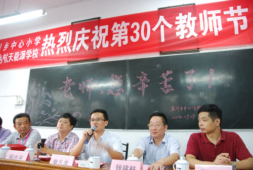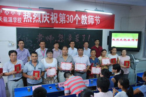 曾凡龙书记首先代表公司向全体教师表达了崇高的敬意:老师,您辛苦了!并代表公司向每一位教师送上了节日慰问金。随后,曾凡龙书记宣布获得2014年度“浪川乡航天能源学校小学教育成长基金——奖教资金”优秀教师名单,向获奖者颁发了荣誉证书和奖金。