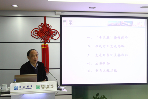 唐伟强副处长分别就"十三五"面临形势、燃气行业发展思路、发展目标及主要指标、主要任务、重点工程建设等五大方面进行阐述。航天能源及上海飞奥各事业部共52位人员参加。