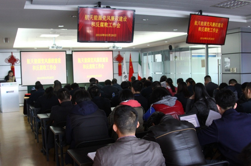 2016年3月28日,航天能源党风廉政建设和反腐败工作会在航天能源公司商务楼三楼中心厅召开。公司领导干部、全体党员、中层以上岗位人员和关键岗位人员参加了大会。