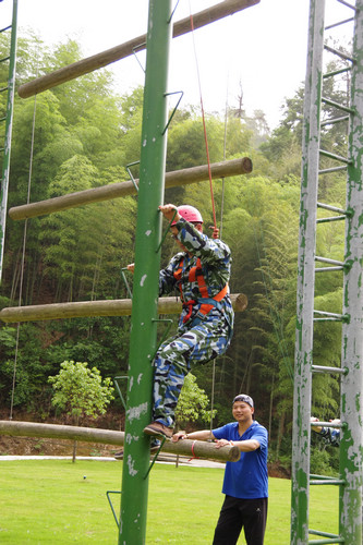 其中,舰艇逃生项目需要每位队员要在规定时间内翻越高四米的高墙,而期间不得借助任何的物品与工具。这让学员们强烈意识到:团队成功是个人成功的基础,个人成功必须建立在团队其他成员的共同努力和支持的基础上;高空抓杠项目则要求所有学员依次独立爬上立柱,在高空圆盘上站稳后,双腿同时用力蹬出,双臂前伸抓住挂在上前方的单杠。这就要求学员必须胆大心细,克服心理恐惧,突破自己体力和心理的极限,极大的磨炼了学员的意志。