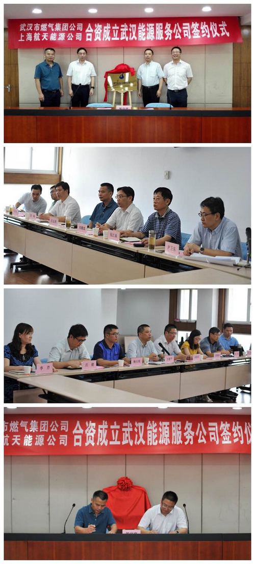7月29日上午,上海航天能源股份有限公司与武汉燃气热力集团公司合资设立"武汉燃气热力能源服务公司"的签约仪式在武汉成功举行。上海航天工业(集团)有限公司副总裁、上海航天能源副董事长方建平,上海航天能源总裁张铁军等航天能源股东代表,与武汉市城投集团公司总经济师邢耀霖、武汉市燃气集团董事长汪志勇等武汉燃气集团股东代表出席签约仪式。