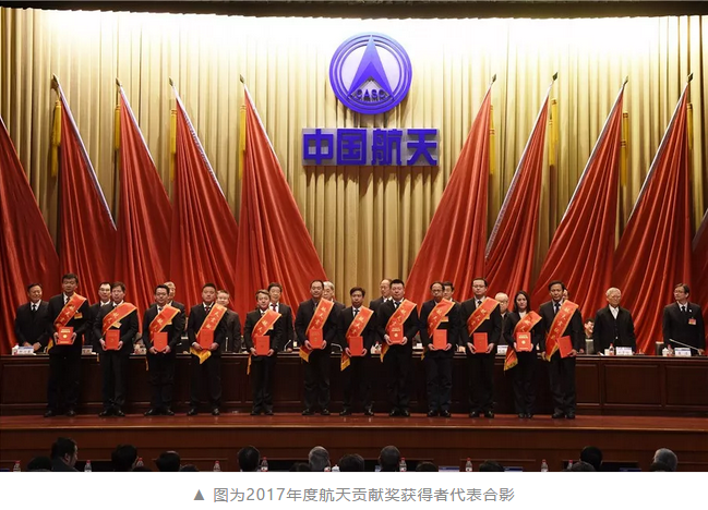 2月7日,中国航天科技集团有限公司在2018年度工作会议上,对获得2017年度航天功勋奖、创新奖、贡献奖和航天金牌班组荣誉称号的集体和个人进行表彰。