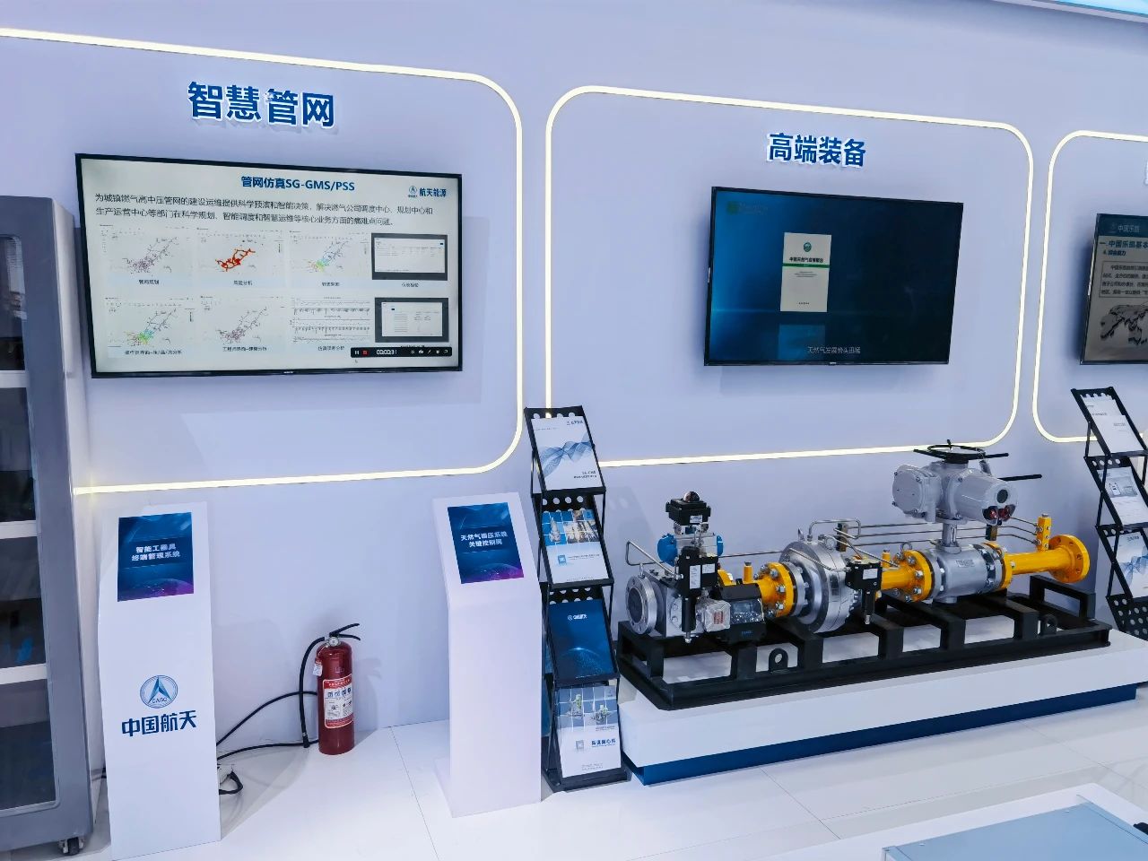 此次展会,航天能源全方位、多角度展示了公司在天然气管道、智慧管网、高端装备领域的成熟应用案例和典型产品,包括燃气管道输配SG-PAS预警系统、燃气管网精准动态仿真技术、天然气调压系统关键控制阀等产品。