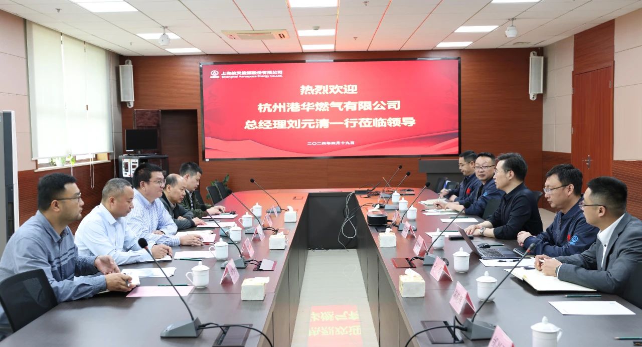4月19日,杭州港华燃气公司刘元清总经理一行到访航天能源,航天能源党委书记、董事长杨翰林等领导参与座谈交流。