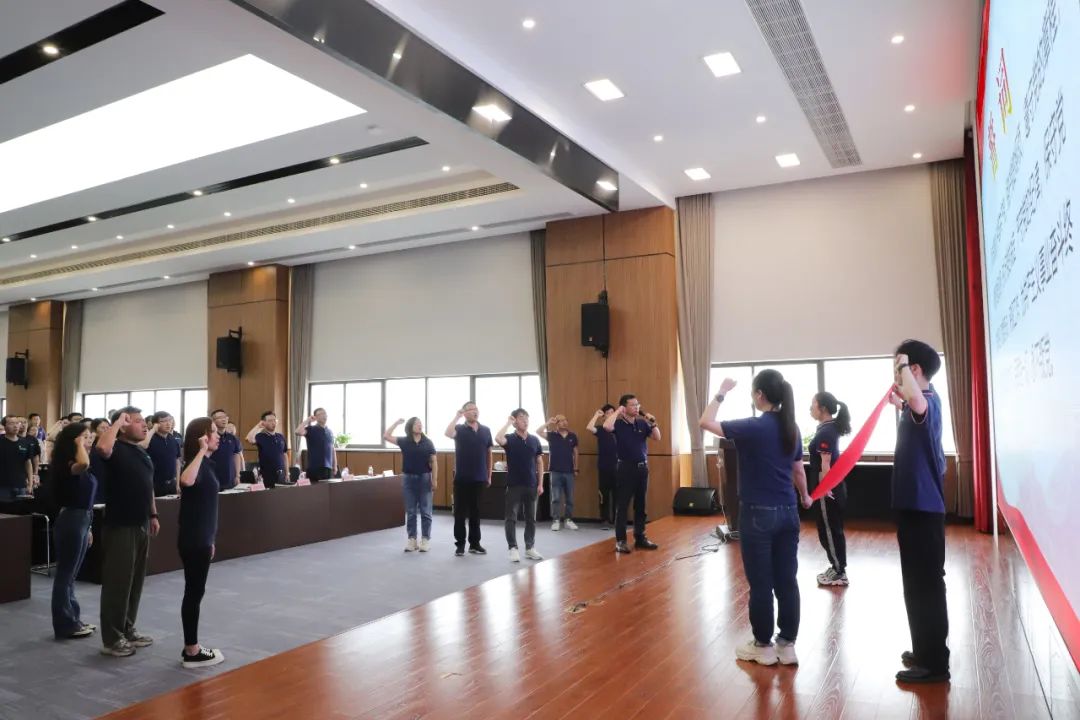 党员大会上,党委为新党员举行入党宣誓仪式,其他党员重温入党誓词。