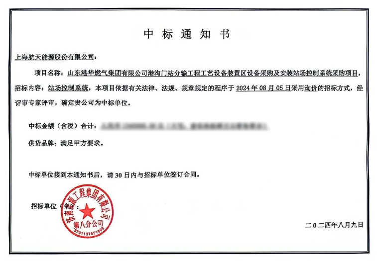 公司中标山东港华燃气集团有限公司港沟门站分输工程工艺设备装置区设备采购及安装站场控制系统采购项目。山东港华燃气集团有限公司港沟门站分输工程是一个“交钥匙”工程。其中场站自控系统采用控制室上位系统、PLC 系统组成工业控制系统。港沟分输站的建设是济南市天然气供应保驾护航的重要举措,将有助于提高天然气供应的稳定性和可靠性,保障城市居民的生活用气和工业用气需求。