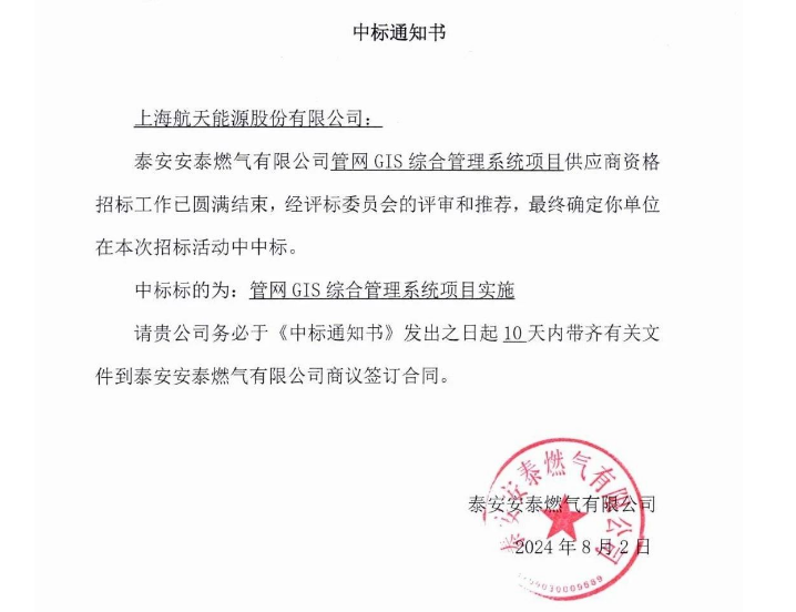 公司中标泰安安泰燃气有限公司管网GIS综合管理系统项目。该项目是以城市输气管网为基础,以GIS地理信息平台为支撑,打造一整套信息化、智能化特征的管理系统。建设内容包含数据建库与数据处理、GIS基础平台、管网GIS一张图平台系统开发、管网巡检系统、物联网平台以及基于管网GIS一张图的安全生产运行等,实现“燃气流、业务流、信息流”高度一体化。