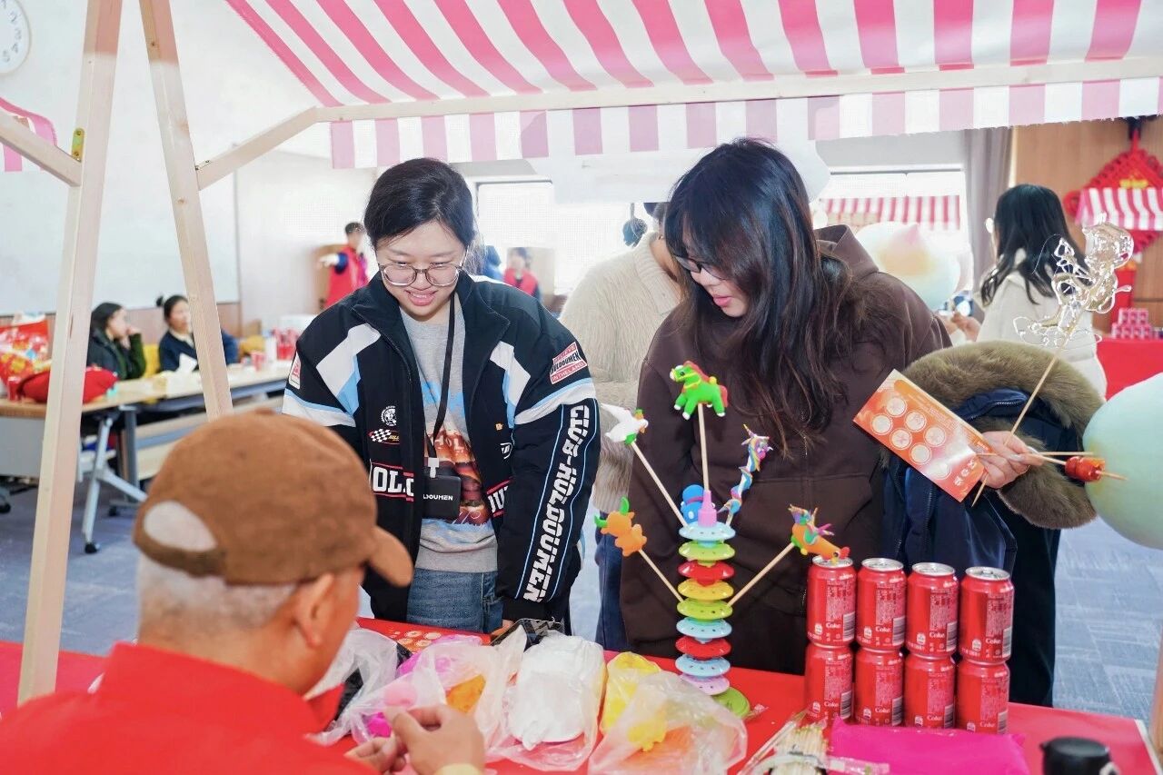在年味“食”光区,手艺人现场匠心创作,熬糖拉丝、巧手捏塑,各式造型的糖画、灵动的面人接连成型;棉花糖、糖葫芦等特色民俗小食现场制作,职工及家属随心品尝,在舌尖的甜蜜滋味中,感受地道的传统新春年味。